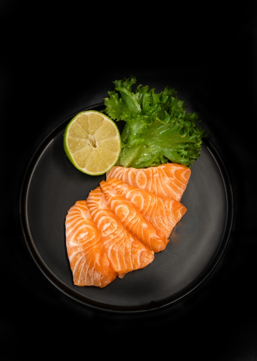 סלומון נא ברוטב שומשום עם תוספת בצל ירוק ופלפל חריף